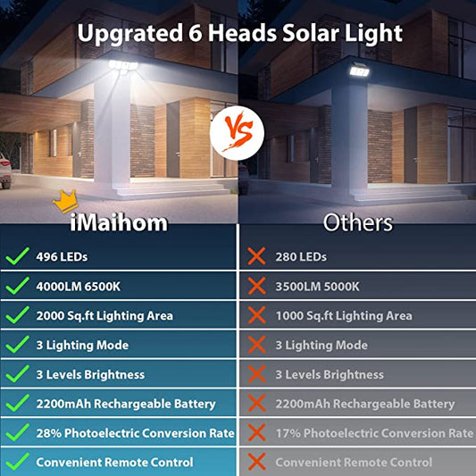 iMaihom Solar LED Motion Sensor Lights with 6 Heads