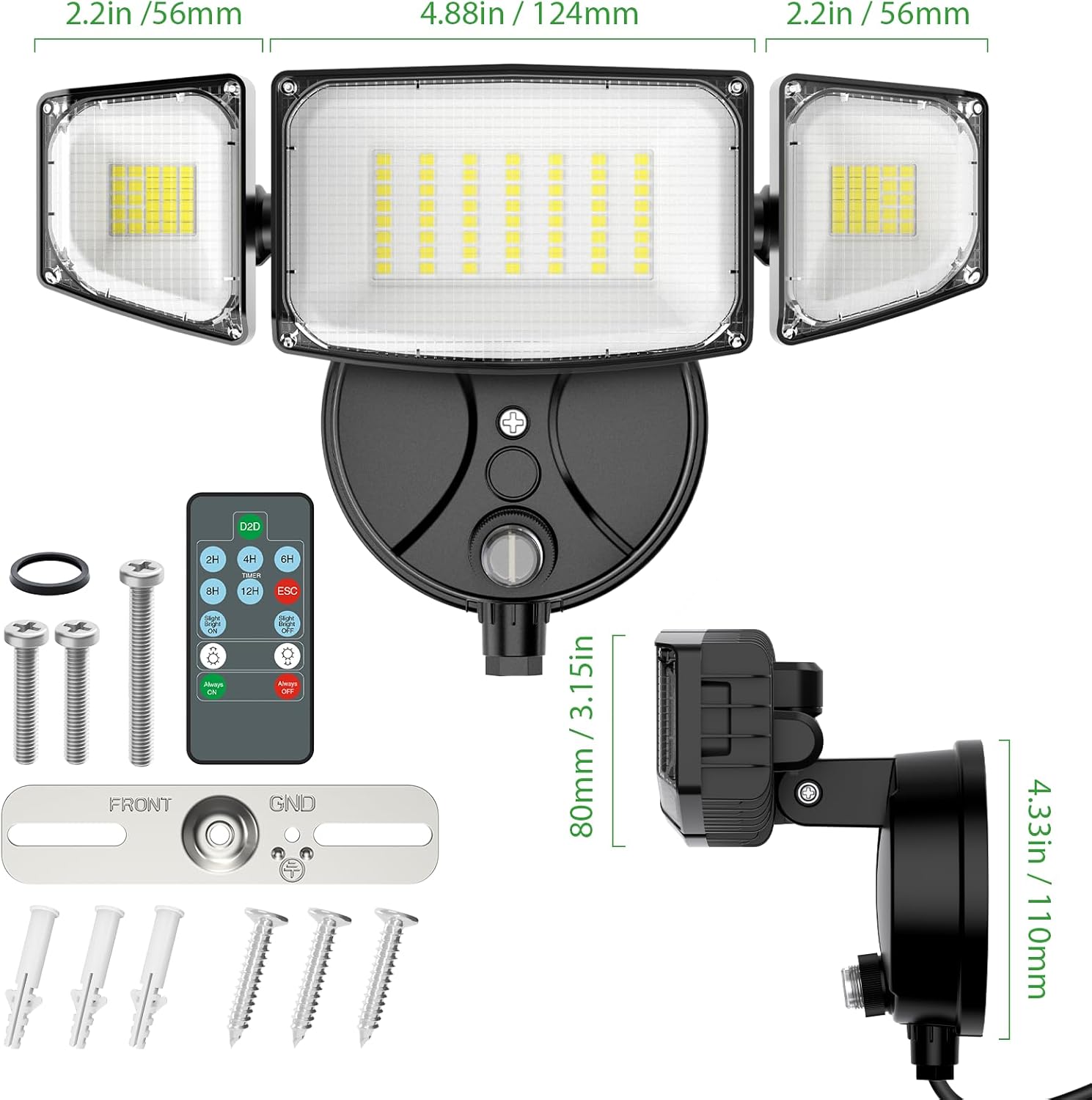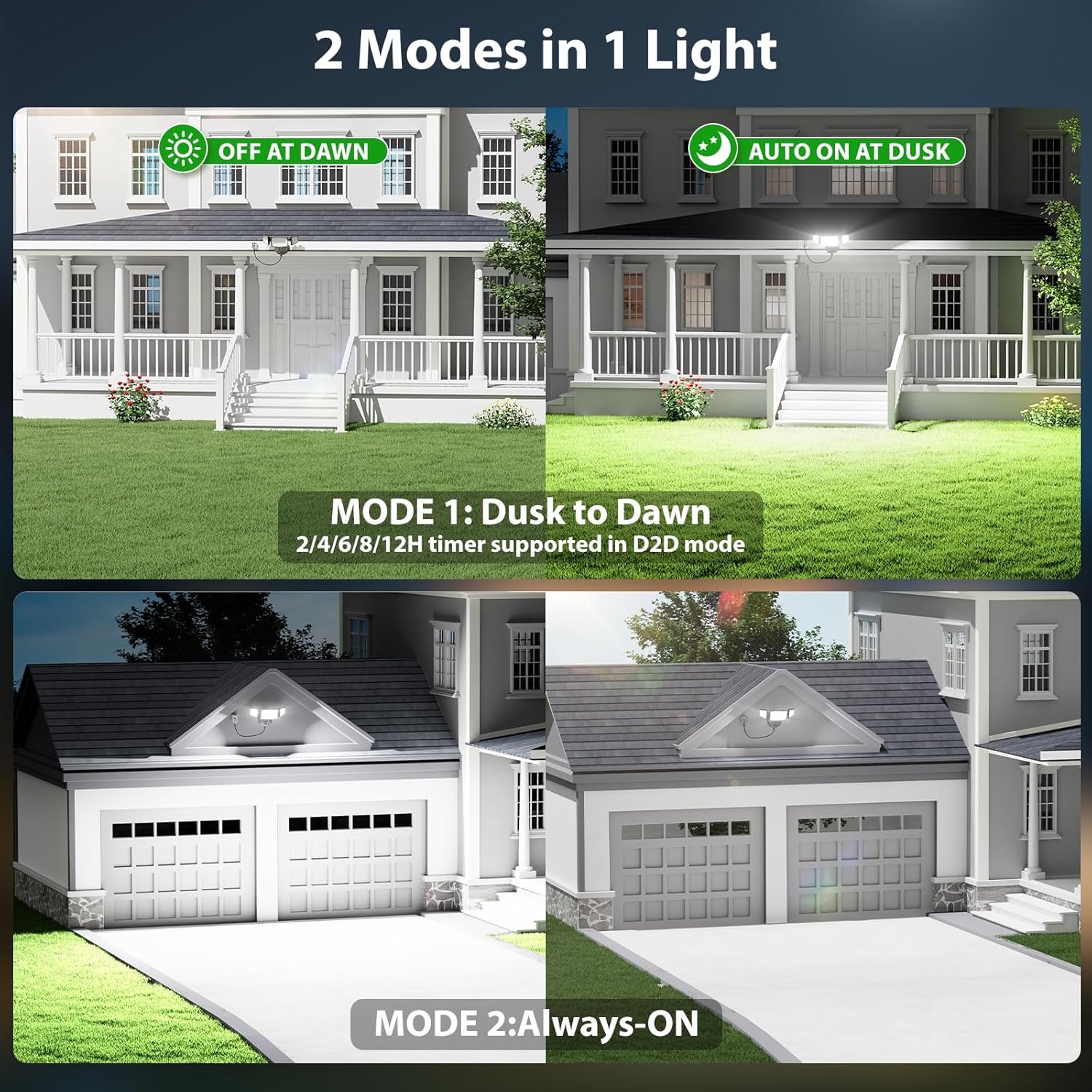 - Remote Control & Adjustable Brightness: Comes with a handy remote control, letting you easily turn the security light on/off, adjust brightness, switch modes, and set timers from a distance. Customize the perfect lighting ambiance for any occasion with adjustable brightness levels, giving you full flexibility and control over your outdoor lighting
