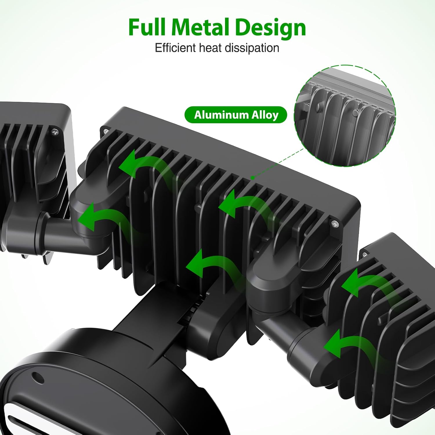 - 100W 10000LM Brightness & 3 Adjustable Heads: Equipped with 98 high-quality LED chips, this dusk to dawn outdoor LED light delivers up to 10000 lumens of powerful brightness. All 3 heads are fully adjustable, covering a wide lighting area of up to 1150 sq. ft and eliminating dark corners in your outdoor space